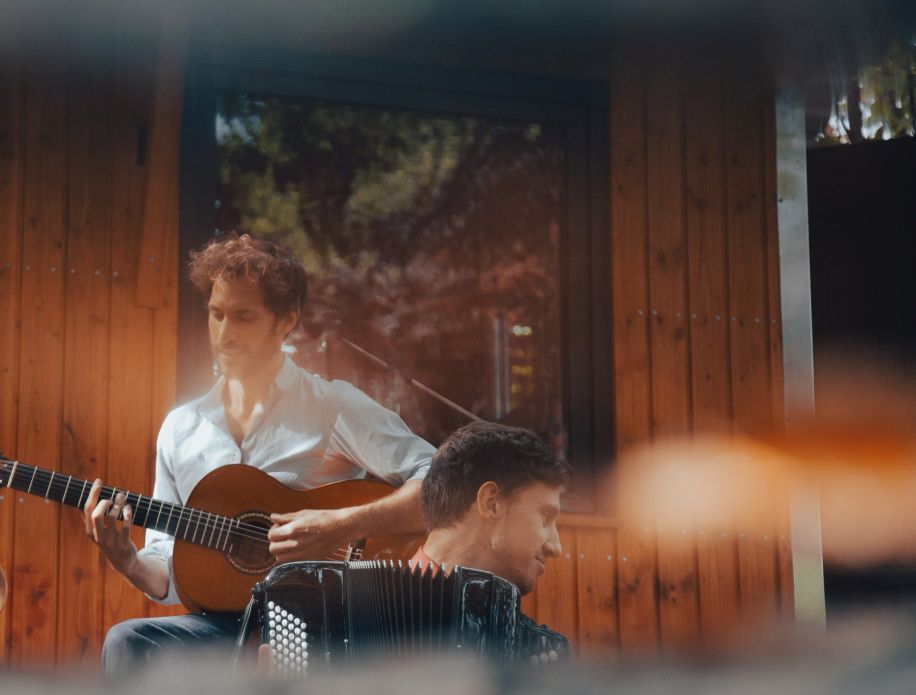 Das Duo Andrii Fesenko (Akkordeon) und Jeremy Fast (Gitarre) sind beide studierte Musiker mit langjähriger Erfahrung bei Auftritten im In- und Ausland. Sie entwickeln neue Klangbilder als Inspiration für eure Ohren und Füße. Sitzenbleiben eigentlich unmöglich!