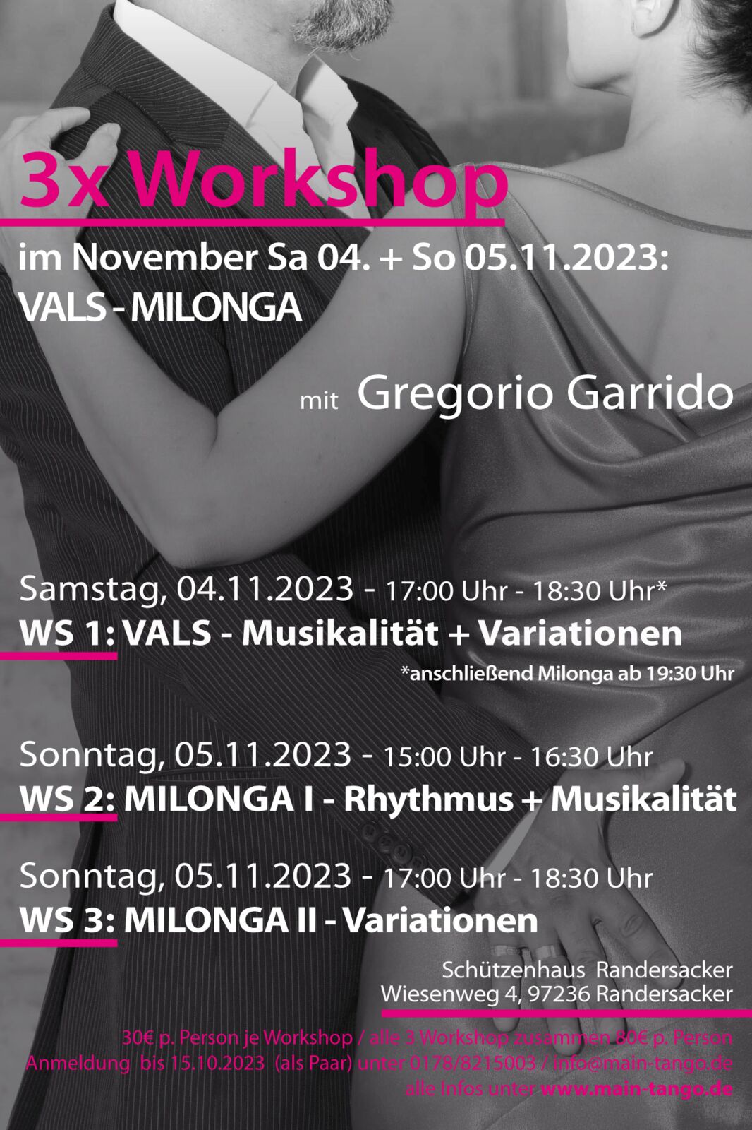 bitte paarweise bis zum 25.10.2023 unter info@main-tango.de oder 0178 821 5003 anmelden